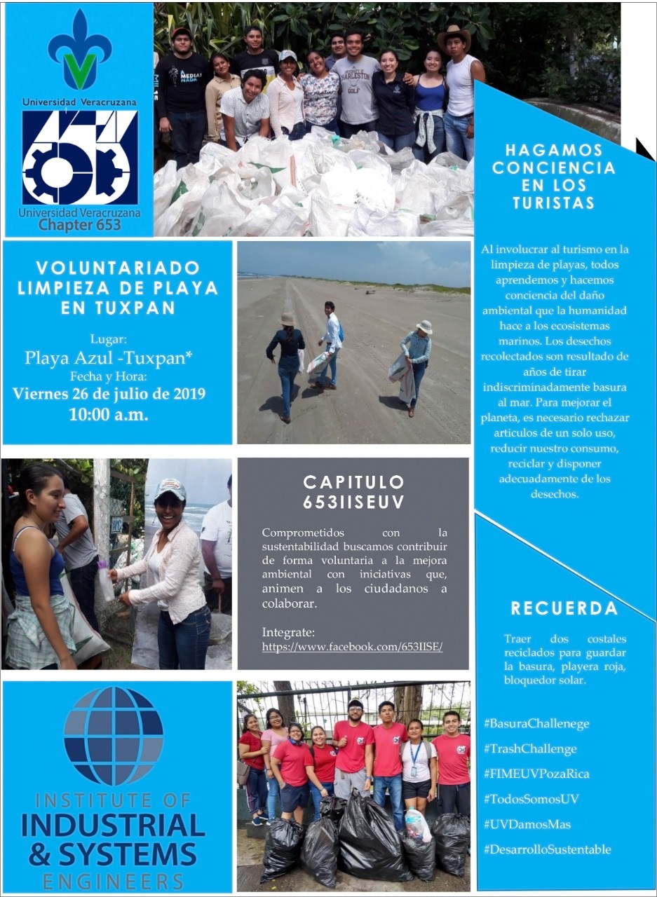 El capítulo estudiantil 653 IISEUV de la Facultad de Ingeniería Mecánica y Eléctrica del Campus Poza Rica invita a la comunidad universitaria y sociedad en general a sumarse en esta loable labor de higiene y sustentabilidad en bienestar de nuestro medio ambiente y salud.