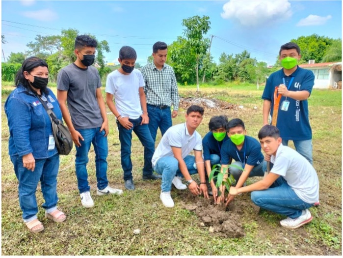 Los estudiantes también realizaron la donación de un arbolito de mango al plantel, el cual fue recibido con mucha alegría por los estudiantes y encargados del huerto estudiantil, así como por la Directora del plantel Lic. María Isabel Gutiérrez Meléndez, quién invitó a los estudiantes a sembrar el arbolito en las áreas destinadas para ese fin.