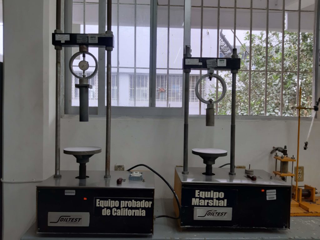 LABORATORIO DE MECÁNICA DE SUELOS Y PAVIMENTOS. Cuenta con los siguiente equipos: Cámara triaxial, agitador de tamices, Copa Casagrande, Prensa triaxial, baño maría, horno de secado, consolidómetro, labrador de muestras, probador California, molde VRS y Permeámetro de carga variable. Entre los ensayos que pueden desarrollarse como practica se encuentra la clasificación de suelos (granulometría), pruebas de límites de consistencia de suelo, conductividad hidráulica de carga variable, consolidación unidimensional, resistencia al esfuerzo cortante, prueba de compactación del suelo y pruebas de valor de soporte.