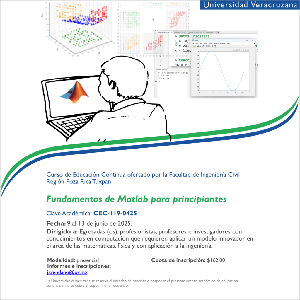 Desarrollar en su quehacer académico o profesional las habilidades en la solución de casos elementales en el área de matemáticas, física y métodos numéricos, mediante el manejo básico del programa de Matlab.