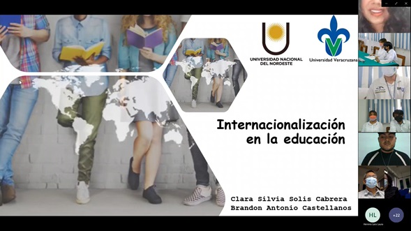 El miércoles 15 de junio de 2022 a las 12 hrs. (México) se llevó a cabo el 2do Coloquio de Internacionalización entre la Facultad de Ingeniería UNNE Argentina y la Facultad de Ingeniería Civil de la Universidad Veracruzana Región Poza Rica –Tuxpan. En dicho coloquio los estudiantes de la Universidad Veracruzana Clara Silvia Solís Cabrera y Brandon Alejandro Antonio Castellanos, quienes se encuentran realizando una estancia de investigación en la Facultad de Ingeniería de la Universidad Nacional del Nordeste (UNNE)-Argentina, expusieron aspectos relevantes de la internacionalización.