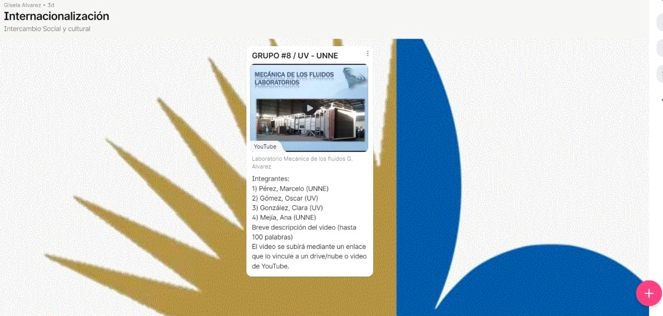 Se participará con la experiencia educativa de Hidráulica por parte de la FIC, y la materia de Mecánica de Fluidos de la UNNE, desarrollando temas en común, realizando sesiones asincrónicas con alumnos y docentes UV-UNNE, sesiones de resolución de problemas por los estudiantes en conjunto, así como, prácticas de laboratorio y actividades culturales.