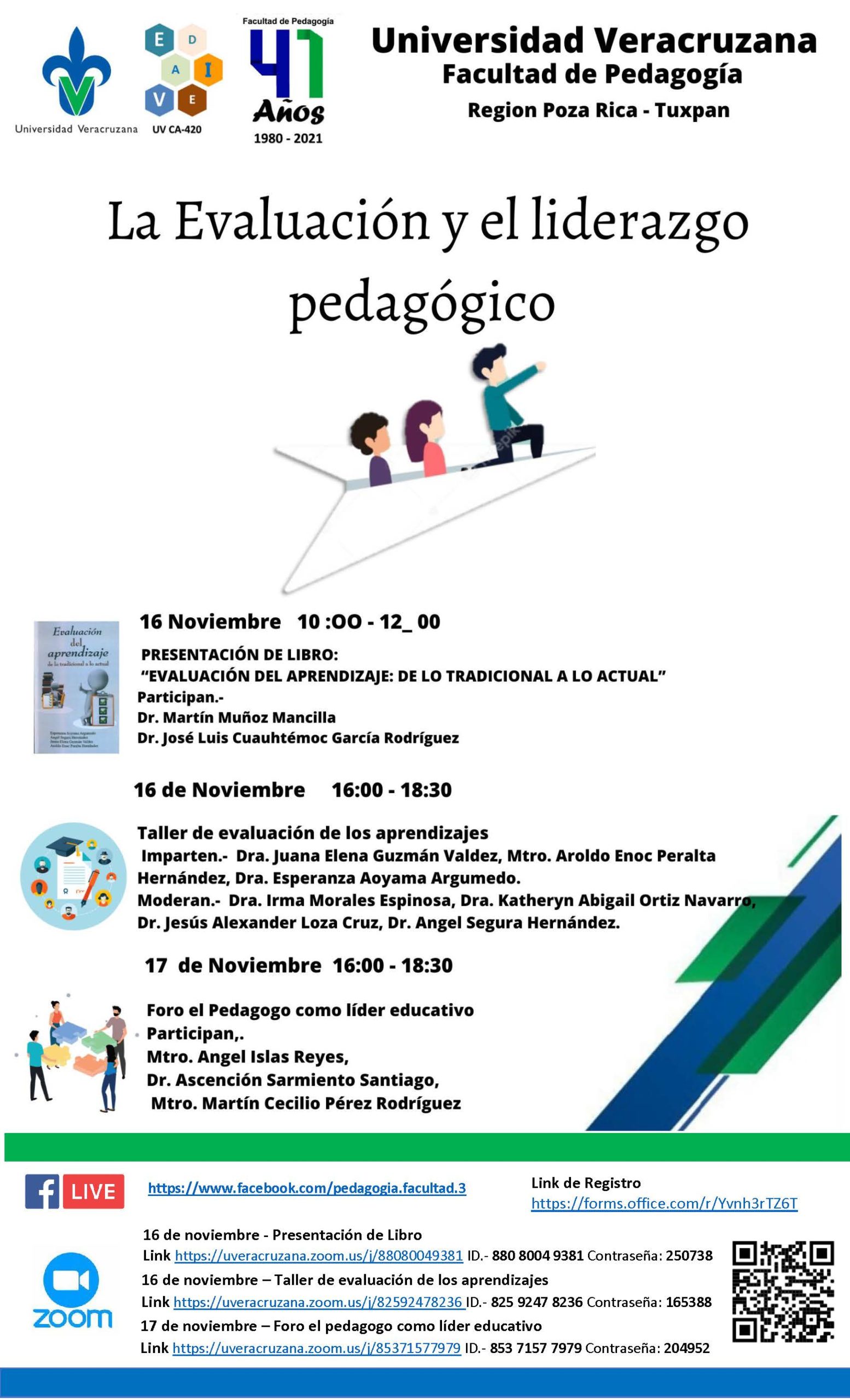 17 de noviembre 16:00 hrs – Foro el pedagogo como líder educativo Link https://uveracruzana.zoom.us/j/85371577979 ID.- 853 7157 7979 Contraseña: 204952