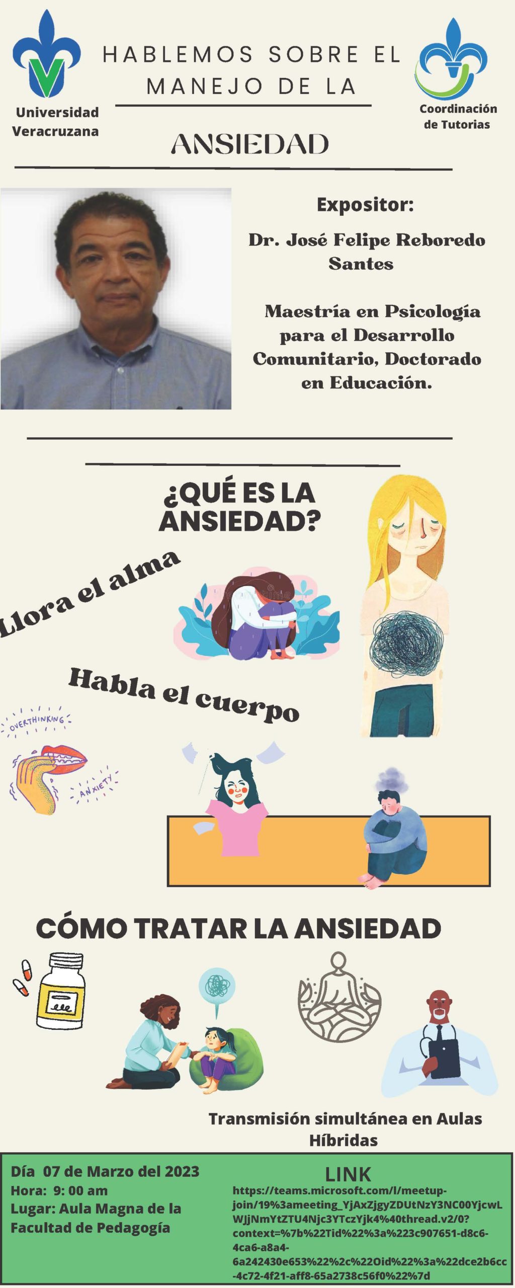 Conferencia «Introducción al manejo de la ansiedad» https://teams.microsoft.com/l/meetup-join/19%3ameeting_YjAxZjgyZDUtNzY3NC00YjcwLWJjNmYtZTU4Njc3YTczYjk4%40thread.v2/0?context=%7b%22Tid%22%3a%223c907651-d8c6-4ca6-a8a4-6a242430e653%22%2c%22Oid%22%3a%22dce2b6cc-4c72-4f21-aff8-65a2738c56f0%22%7d