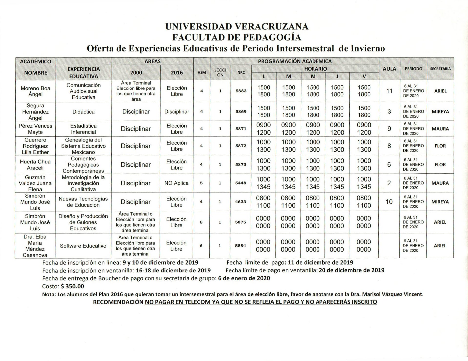 Se les recuerda que los intersemestrales de invierno 202048 enero 2020, esta abiertos para inscribirse 6 y 7 de enero de 2020 hay espacios disponibles en algunas experiencias. a continuación se da la oferta.