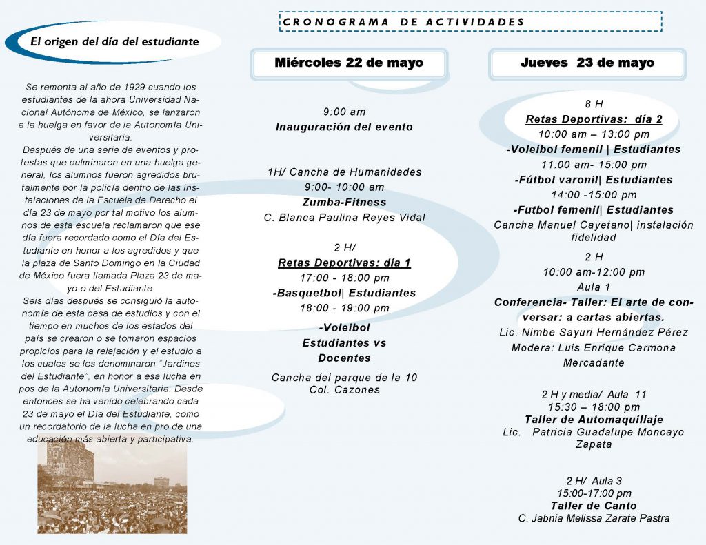 Semana del Estudiante SEMANA DEL ESTUDIANTE DENTRO DEL MES DE MAYO EN LOS DÍAS 22, 23 Y 24 DEL AÑO EN CURSO.