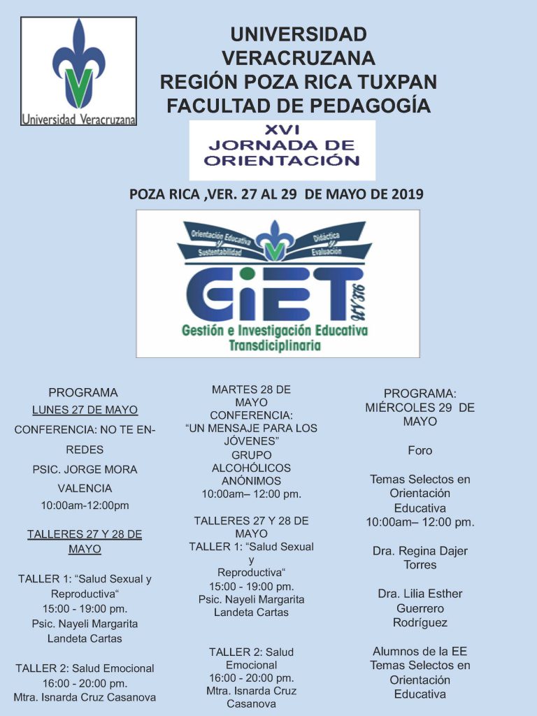 XVI Jornada de Orientación Del 27 al 29 de Mayo de 2019 En el Auditorio «Adela del Toro Ponce» de Humanidades