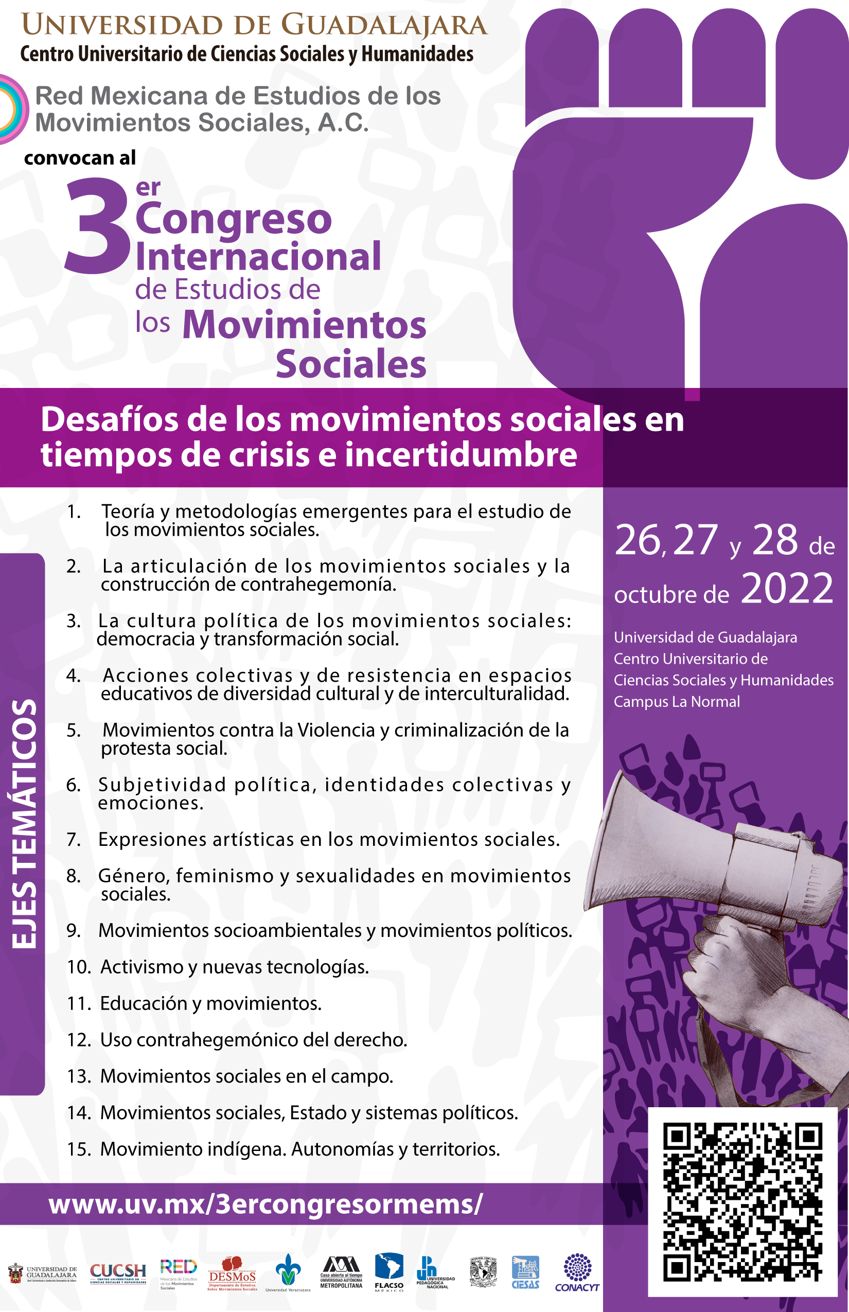 3er Congreso Internacional de Estudios Sobre los Movimientos Sociales que se llevará a cabo en la Universidad de Guadalajara.