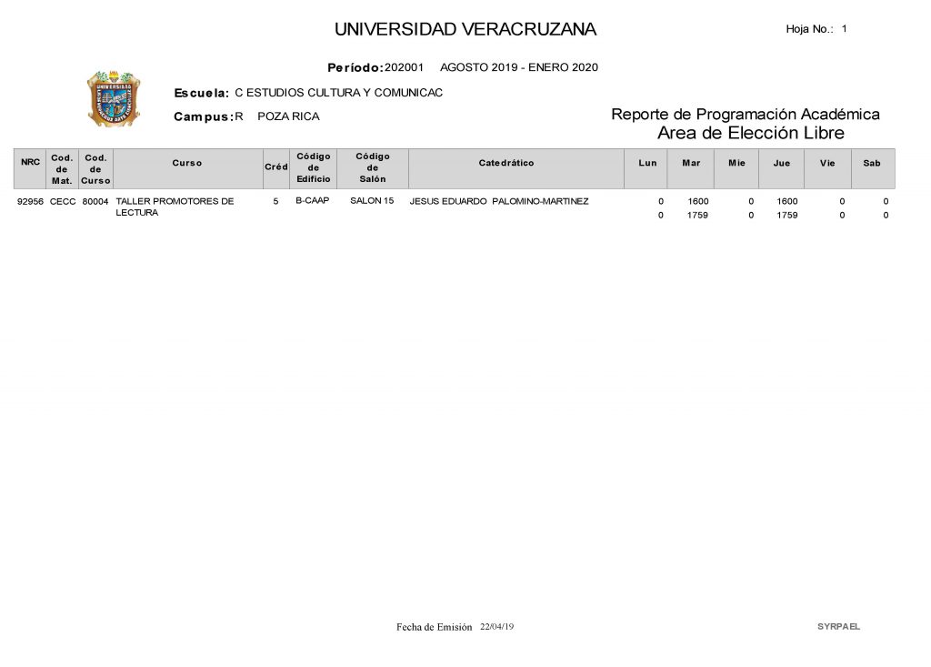 Con el presente les informo que este semestre estaremos ofertando el Taller de Promotores de Lectura en el área de AFEL con 5 créditos para los alumnos, con número de NRC: 92956 e impartido por un servidor los días Martes y Jueves de 16:00 a 18:00 horas, al interior de la Biblioteca USBI Poza Rica.
