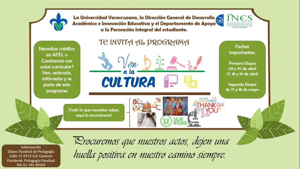 Semana de Salud y Sustentabilidad ACTIVIDADES PROGRAMADAS PARA EL SEMESTRE FEBRERO- JULIO 2018 AFEL Y VEN A LA CULTURA “Semana de Salud y Sustentabilidad” 17, 18 y 19 de abril de 2018