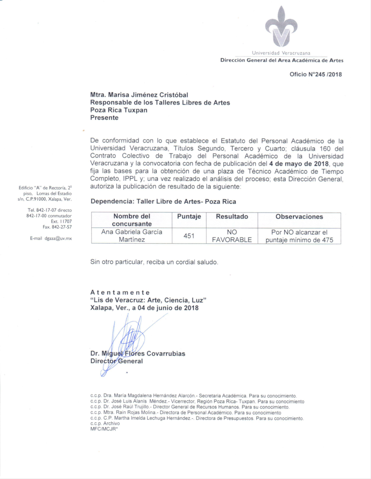 Resultados para la obtención de una plaza de técnico académico de tiempo completo. OF245-AUTRESULTADOS TLA-PRTuxpan