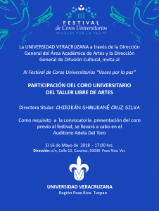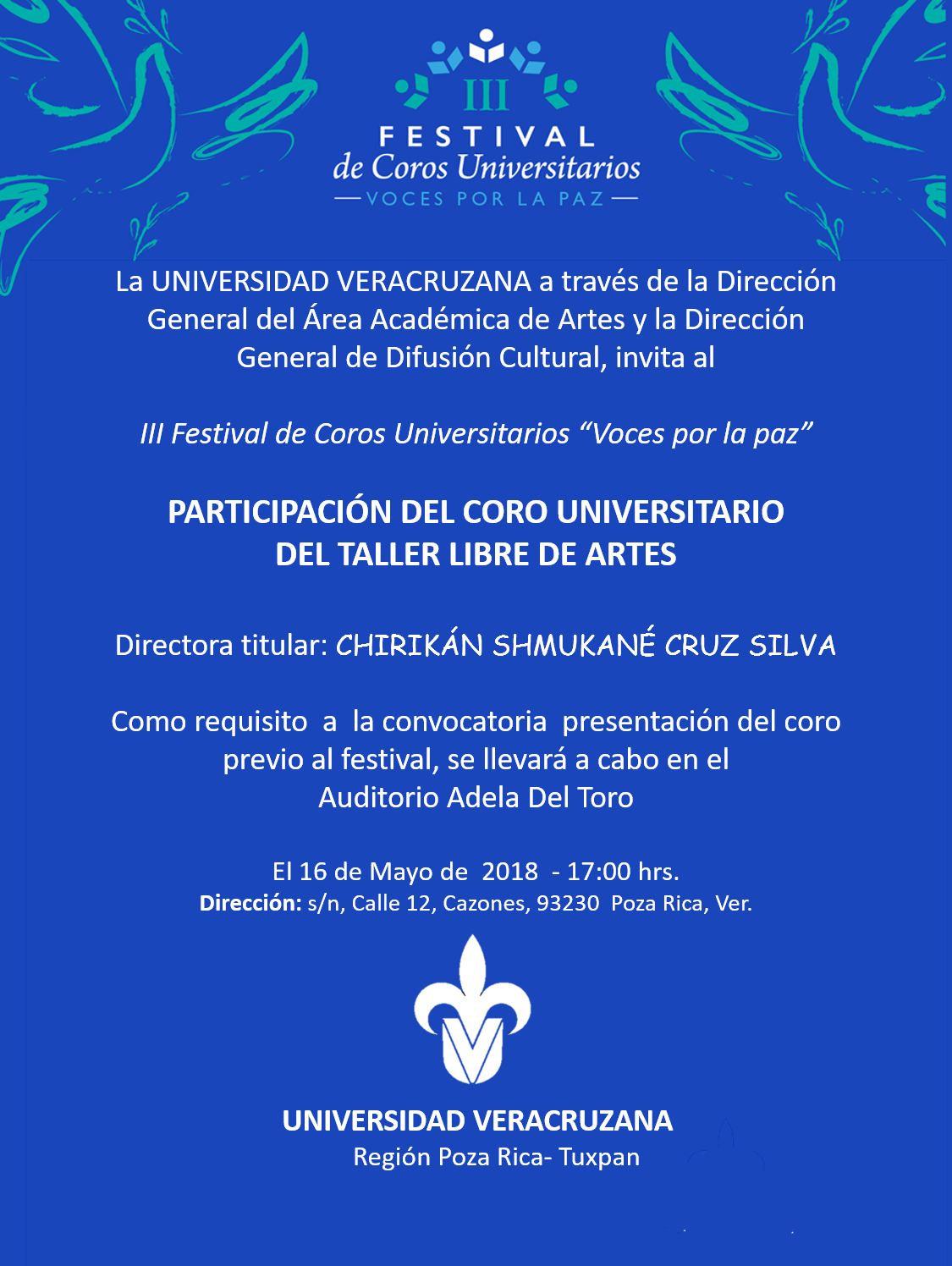 El Taller Libre de Artes Poza Rica Universidad Veracruzana Región Poza Rica-Tuxpan. Se complace en extender la cordial invitación