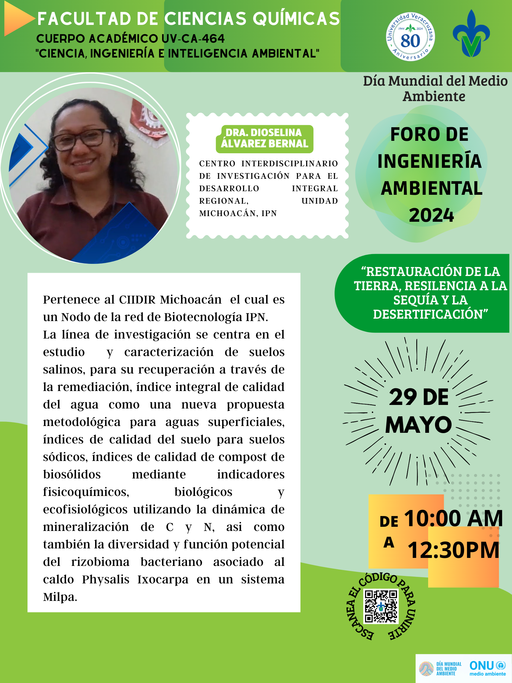 Pertenece al CIIDIR Michoacán el cual es un Nodo de la red de Biotecnología IPN. La línea de investigación se centra en el estudio y caracterización de suelos salinos, para su recuperación a través de la remediación, índice integral de calidad del agua como una nueva propuesta metodológica para aguas superficiales, índices de calidad del suelo para suelos sódicos, índices de calidad de compost de biosólidos mediante indicadores fisicoquímicos, biológicos y ecofisiológicos utilizando la dinámica de mineralización de C y N, asi como también la diversidad y función potencial del rizobioma bacteriano asociado al caldo Physalis Ixocarpa en un sistema Milpa.