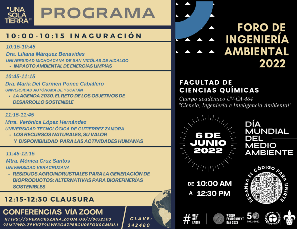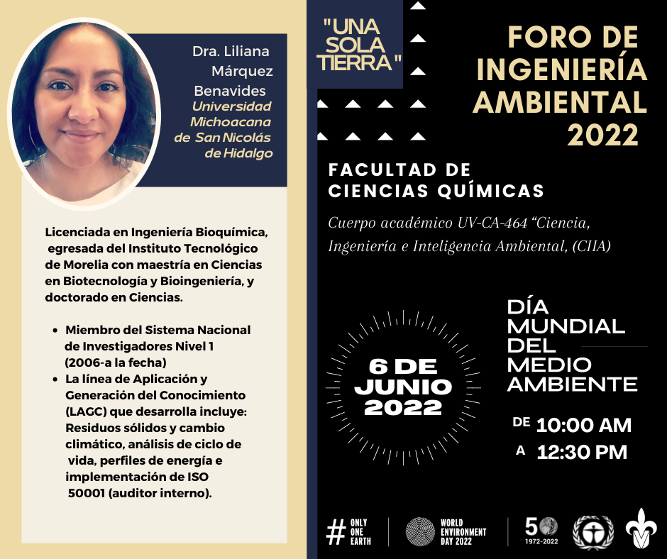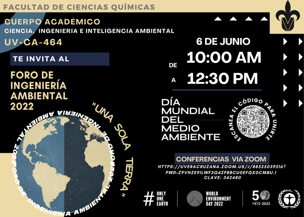 El Día Mundial del Medio Ambiente es la plataforma mundial más grande para la divulgación ambiental y lo celebran millones de personas en todo el mundo; las Naciones Unidas para el Medio Ambiente (PNUMA) se ha encargado de llevar este programa y se ha celebrado cada 5 de junio desde 1974. Este año el lema es “Una Sola Tierra” y este se trata de un eslogan con gran simbolismo ya que fue el empleado en la primera Conferencia de Estocolmo de 1972, un evento que puso el medio ambiente en la agenda global y condujo al establecimiento del Día Mundial del Medio Ambiente. Por lo anterior el cuerpo académico UV-CA-464 “Ciencia, Ingeniería e Inteligencia Ambiental, (CIIA)” al ser un CA adscrito al programa de Ingeniería Ambiental se suma a esta celebración.