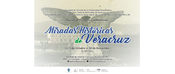 Carlos Hugo Hermida Rosales.- La Universidad Veracruzana (UV), a través del cuerpo académico (CA) Estudios Históricos de la Región del Golfo de México Siglo XIX y XX, de la Facultad de Historia, invita al ciclo de conferencias “Miradas históricas de Veracruz”, que se lleva a cabo del 5 de octubre al 30 de noviembre en el Instituto de Investigaciones Histórico-Sociales (IIH-S), la Facultad de Historia y el Archivo General del Estado de Veracruz.
