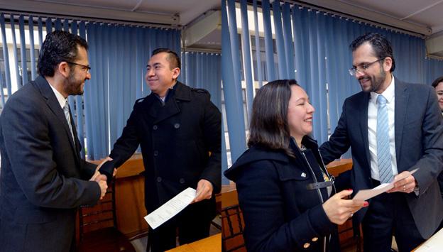 David Sandoval .-La Secretaría de Administración y Finanzas (SAF) de la Universidad Veracruzana (UV) entregó nombramiento a los nuevos titulares de dos de sus dependencias: la Dirección de Control de Bienes Muebles e Inmuebles y el Departamento de Servicios Generales, en reunión celebrada el miércoles 3 de enero en la Sala de Juntas “Jenny Beltrán Casanova” de la Rectoría universitaria.