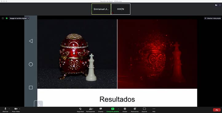Entrevistado por videoconferencia, el universitario explicó que la holografía consiste en captar una imagen con un aspecto tridimensional y que trabajó mediante holografía monocromática, es decir, un solo color, en este caso en escala de rojos, color del láser que se utiliza en el Laboratorio de Óptica Aplicada de la Facultad.