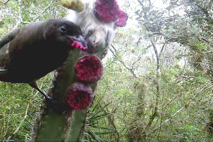 Frutos maduros de P. leucocephalus, removidos por la especie frugívora Psilorhinus morio