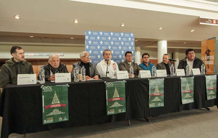 En la rueda de prensa también participaron Lanfranco Marcelletti, director de la OSX; José Miguel Flores, de Orbis Tertius; Alberto de la Rosa, de Tlen Huicani; Rey Alejandro Conde, director de Grupos Artísticos de la UV; Noel Josafat García Melo, director de la Camerata Coral de la Facultad de Música; Rafael Jiménez, del Ensamble Clásico de Guitarras, e Iván Velasco, del Mariachi Universitario.