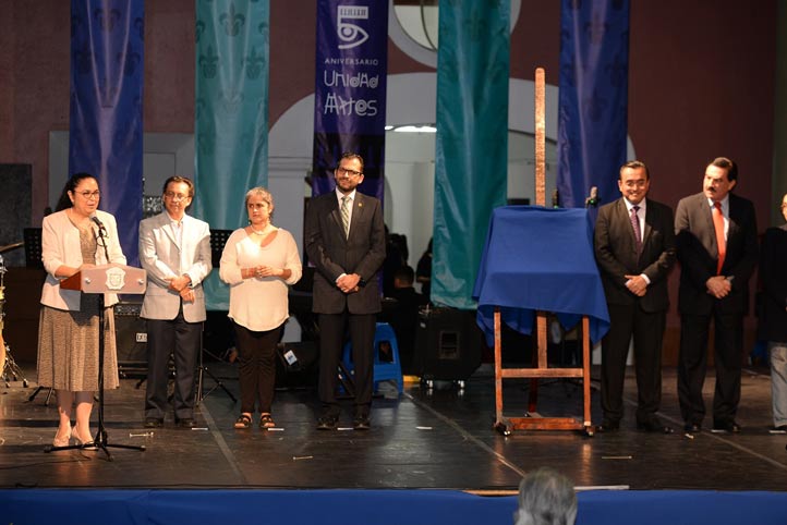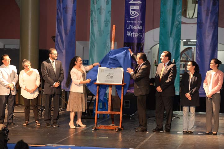 12/10/18, Xalapa, Ver.- La Universidad Veracruzana (UV) celebró los 25 años de creación de la Unidad de Artes con la develación de una placa conmemorativa, en un evento que contó con la presencia de estudiantes, profesores y autoridades universitarias.