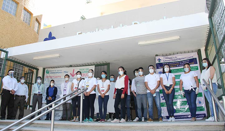 En la zona universitaria de la región Xalapa los aspirantes comenzaron a ingresar a las aulas de aplicación del examen a partir de las 8:00 horas, después de superar un filtro sanitario aplicado por personal de la UV.