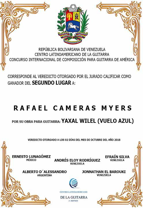 - Rafael Cameras Myers obtuvo el segundo lugar en composición para guitarra