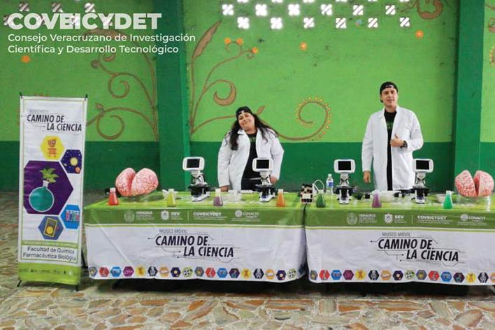 27/12/2019, Xalapa, Ver.- Por primera vez, estudiantes de la Facultad de Química Farmacéutica Biológica (QFB) de la Universidad Veracruzana (UV) participaron en la gira del Museo Móvil “Camino de la Ciencia”, organizado por el Consejo Veracruzano de Investigación Científica y Desarrollo Tecnológico (Coveicydet).