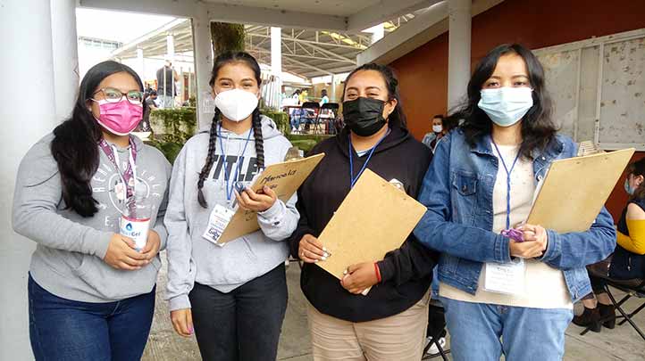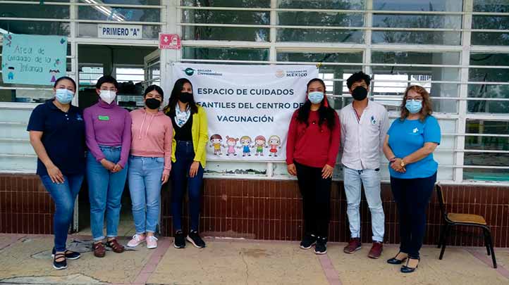 Los jóvenes brindaron apoyo en los espacios “Cuidados de la infancia”, ubicados en los centros de vacunación de Xalapa