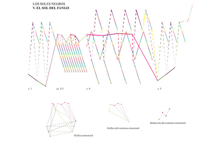 Hay una distinción más de esta investigación: todo el análisis está explicado en el documento por medio de gráficas, para las que utilizó colores y formas. “Hubo una transversalidad de la parte musical a la visual, para explicar la música con imágenes”.