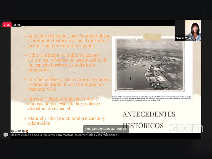 Claudia Viviana Prado Hernández presentó “Análisis de la transformación ambiental durante los siglos XVI al XX en la región Coatzacoalcos-Minatitlán. Una mirada desde la arqueología histórica”.