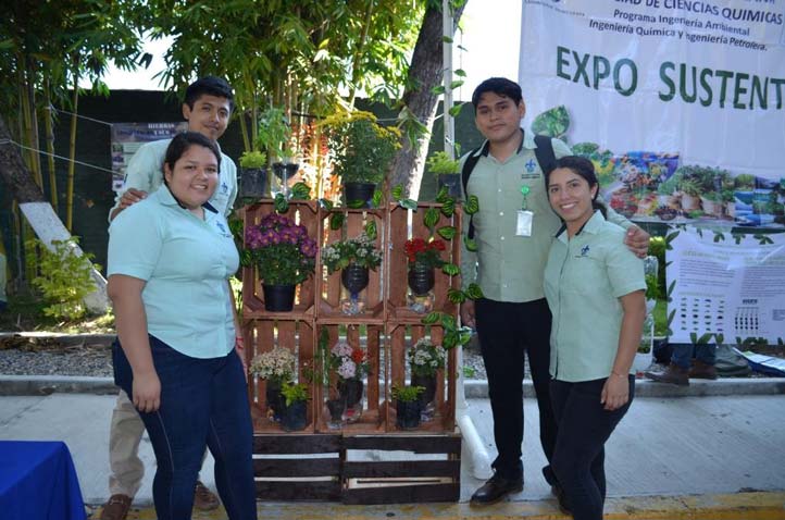 Los programas educativos de Ciencias Químicas e Ingeniería Ambiental presentaron una instalación de huertos urbanos verticales, donde se siembran diferentes especies de plantas comestibles como tomate, cebolla, perejil, apio, orégano, tomillo, té verde, yerbabuena.