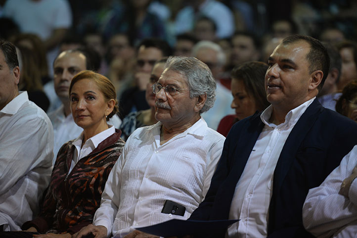 En la ceremonia estuvieron presentes, por la UV: María Magdalena Hernández Alarcón, secretaria Académica; Salvador Tapia Spinoso, secretario de Administración y Finanzas; Octavio Ochoa Contreras, secretario de Desarrollo Institucional; Edgar García Valencia, director de la Editorial UV; Carlos Lamothe Zavaleta, vicerrector de la región Coatzacoalcos-Minatitlán, y Germán Martínez Aceves, coordinador general de la FILU.