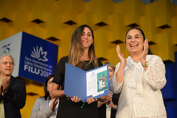 Como primera actividad de la FILU 2019, la Rectora entregó dos premios: el Premio Latinoamericano de Primera Novela “Sergio Galindo” a la guionista argentina María Eugenia Ratcliffe, por su novela Japen.