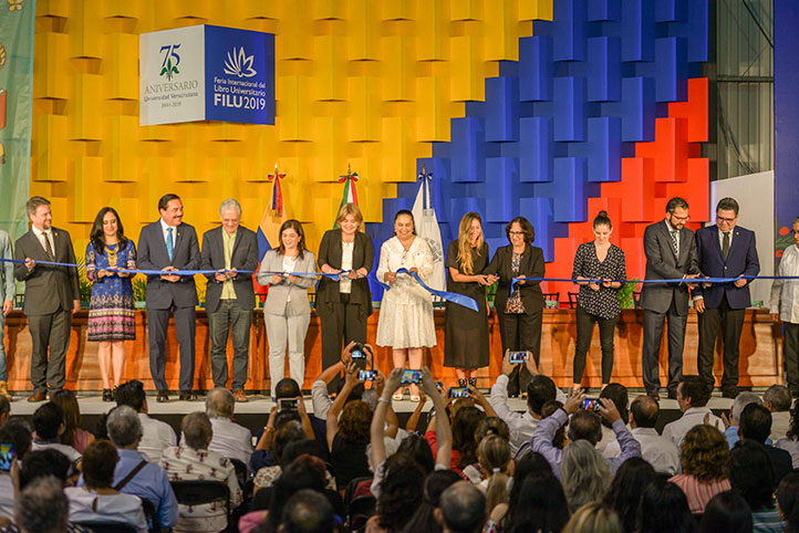 05/04/19, Xalapa, Ver.- La Feria Internacional del Libro Universitario (FILU) 2019 de la Universidad Veracruzana (UV) fue inaugurada por la rectora Sara Ladrón de Guevara y la embajadora del país invitado, Colombia, Patricia Eugenia Cárdenas Santamaría, además de autoridades universitarias, del gobierno del estado y municipal.