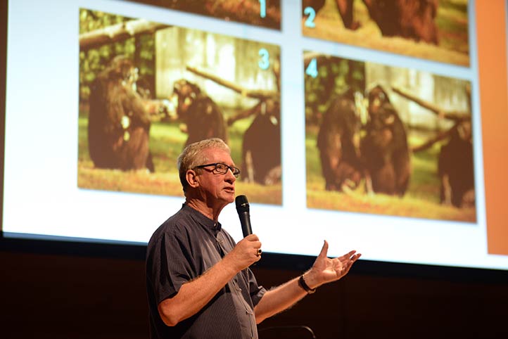 El reconocido autor de El mono que llevamos dentro mantuvo la atención de los concurrentes más de una hora, con su charla “Emociones animales y empatía: comportamiento y neurociencias”, detallada a través de videos en los que el investigador holandés dijo que conforme a los estudios realizados se demostró que los animales tienen capacidades socio-emocionales igual que los seres humanos.