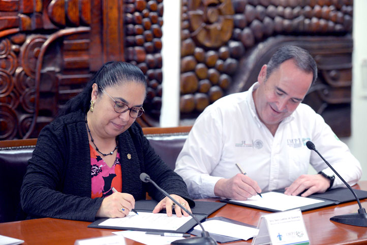 La rectora Sara Ladrón de Guevara y el director general del IMPI, Miguel Ángel Margáin, signaron el documento