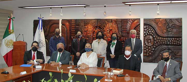 Acompañada de la secretaria Académica, Magdalena Hernández Alarcón, y de la Abogada General, Ana Lilia Ulloa Cuéllar, la Rectora mostró a los asistentes las gacetas oficiales que se exhiben en la Sala de Juntas, que son parteaguas en la conformación de la institución y legitiman su operación y desarrollo.