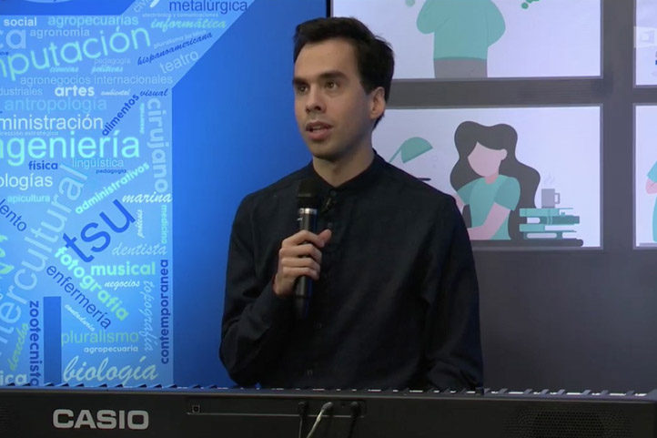 01/03/2022, Xalapa, Ver.- Fernando Apan, pianista egresado de la Facultad de Música de la Universidad Veracruzana (UV), participó en el conversatorio “Un mundo sin barreras” de la Expo Orienta 2022, donde afirmó que la vocación se encuentra al interior de uno mismo.