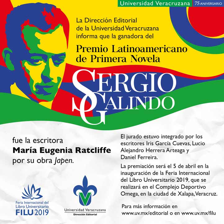El Premio Latinoamericano de Primera Novela “Sergio Galindo” se entregará durante la inauguración de la Feria Internacional del Libro Universitario, el viernes 5 de abril a las 17:00 horas en el Foro “Sergio Galindo” del Complejo Deportivo Omega, en la ciudad de Xalapa, Veracruz.