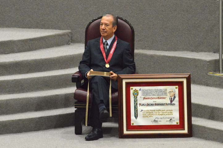 En la sesión, a la que asistió la rectora Sara Ladrón de Guevara, el presidente de la Mesa Directiva del Congreso Local, José Manuel Pozos Castro, expresó que tras un riguroso análisis de los candidatos a obtener la medalla, los integrantes de la Comisión de Ciencia y Tecnología del Congreso acordaron entregarla a Rodríguez Revoredo “por su sólida formación científica, amplia experiencia en la investigación y una larga trayectoria en innovación y aplicación de la tecnología al servicio de la educación pública”.