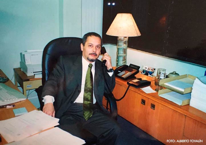 Después de algunos años, coincidimos en el Departamento de Prensa de la UV. Ahora era mi jefe. Comenzamos con un proyecto de trabajo que nos atrapó desde el inicio, la creación del semanario Universo, cuya primera edición fue el 30 de octubre del año 2000, el cual nos dejó no sólo días y noches de desvelo y aprendizaje, sino además la oportunidad de que quienes conformábamos el equipo inicial compartiéramos días, meses y años comprometidos, pero también divertidos. Siempre tuvo la disposición de escuchar si alguien lo buscaba no como jefe, sino como amigo, siempre sereno, siempre bromista, y vale decirlo, a veces también con altibajos y tensiones. Nos abrió las puertas de su casa, del afecto de su familia, de su esposa e hijos. Y con eso, con lo bueno, con eso nos quedamos.