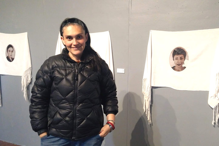 “Las fotografías se sacan al sol, es decir, las saco a imprimir al sol; las imágenes se transfieren a rebozos blancos. Para llegar a este resultado experimenté con diversas técnicas que tuvieron el resultado que buscaba, incluso pusieron amarillo el rebozo por el uso de los químicos.”