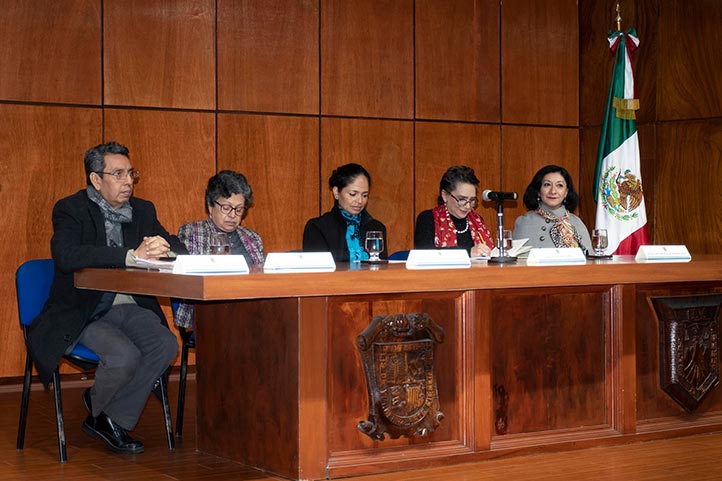 La moderación estuvo a cargo de la académica e investigadora de la Universidad Veracruzana Intercultural, Shantal Meseguer Galván. Como parte de la actividad participó Fernando Santiago Vázquez, coordinador de la cátedra, y Tirso Bautista Cárdenas, quien leyó en náhuatl una reseña de la actriz escrita por el primero.