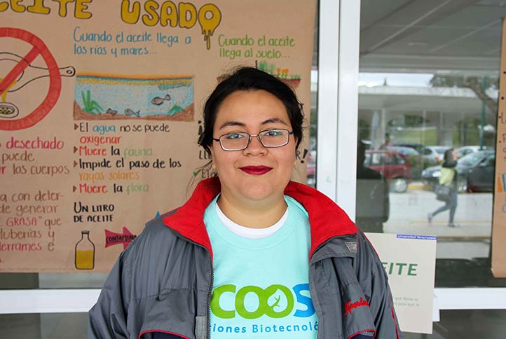 Daniela Zárate, representante de Ecoo Soluciones Ambientales, empresa que recolecta el aceite vegetal, aseguró que es fundamental que la iniciativa privada y la academia se unan en pro del cuidado del medio, ya que esto beneficia a la sociedad.