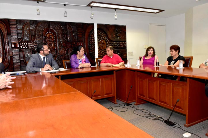 La reunión de trabajo tuvo lugar esta tarde en la Sala de Juntas de Rectoría, en la que participaron la rectora Sara Ladrón de Guevara; el secretario de Administración y Finanzas, Salvador Tapia Spinoso, y el director general de Recursos Humanos, José Raúl Trujillo.