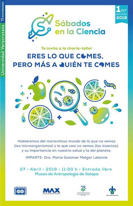 - La charla-taller “Eres lo que comes, pero más a quién te comes”, será impartida por María Guiomar Melgar Lalanne el 27 de abril, a las 11:00 horas, en el Museo de Antropología de Xalapa