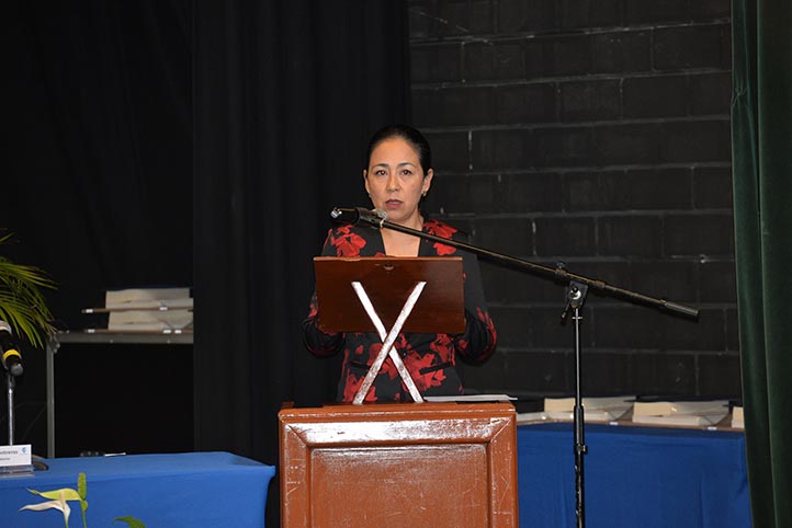 Jaqueline Jongitud Zamora, presidenta en turno de la Junta de Gobierno, inauguró oficialmente el coloquio