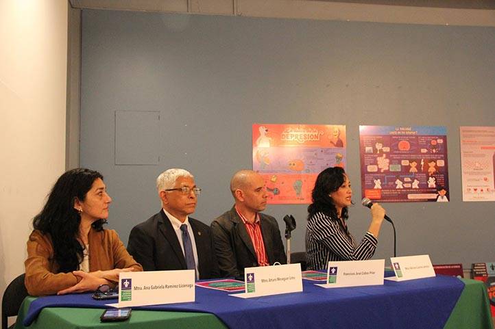 Cynthia Fernández compartió que en su cartel explica cómo el cerebro tiene balance en los neuroquímicos que causan la depresión, pero que a su vez se estudian otros factores que intervienen en ésta, como la microbiota intestinal.