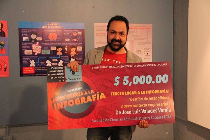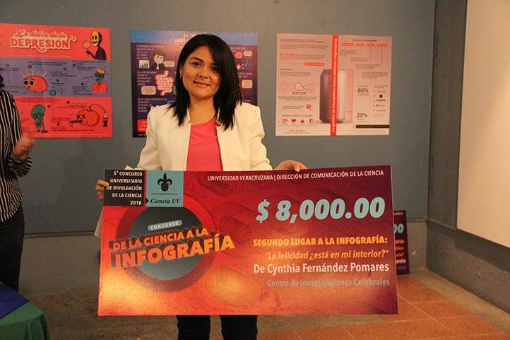 El segundo sitio correspondió a Cynthia Fernández Pomares, investigadora del Centro de Investigaciones Cerebrales, por su trabajo “La felicidad ¿está en mi interior?”; el tercer lugar fue para José Luis Valadés Varela, maestro de la FCAS, por la infografía “Gestión de intangibles: nuevo contexto empresarial”.