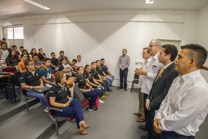 En el auditorio de la Facultad de Ingeniería Civil, este lunes 27 de mayo, Mario Oliva Suárez, director general de Relaciones Internacionales, dio la bienvenida a los integrantes de la delegación colombiana, conformada por 25 estudiantes de pregrado, cinco de posgrado y cinco académicos de las carreras de Ingeniería Civil e Ingeniería en Sistemas.